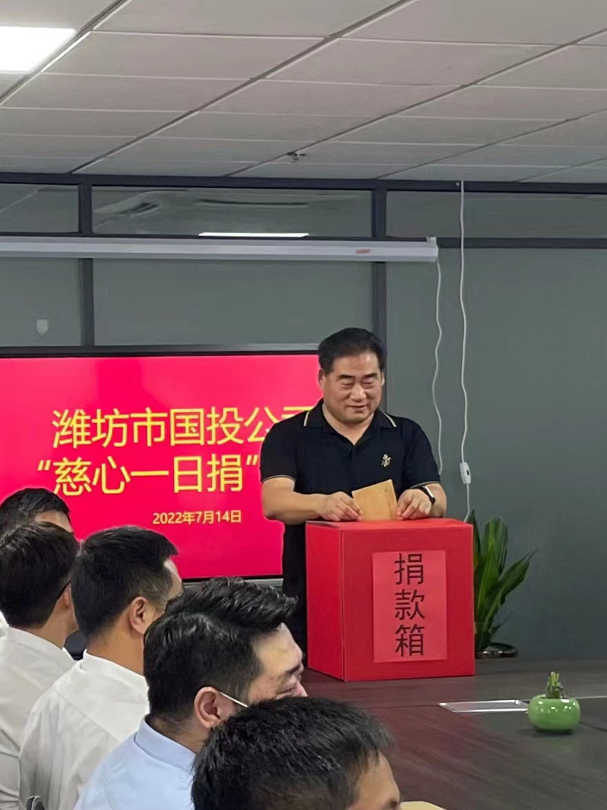 為進一步弘揚崇慈向善、扶貧濟困的傳統(tǒng)美德,7月14日下午,市國投公司開展“慈善一日捐”活動。 活動現(xiàn)場,公司班子率先垂范,帶頭參與,全體職工積極響應(yīng),踴躍捐款,依次將凝聚著愛心的善款投入箱內(nèi),共同為慈...